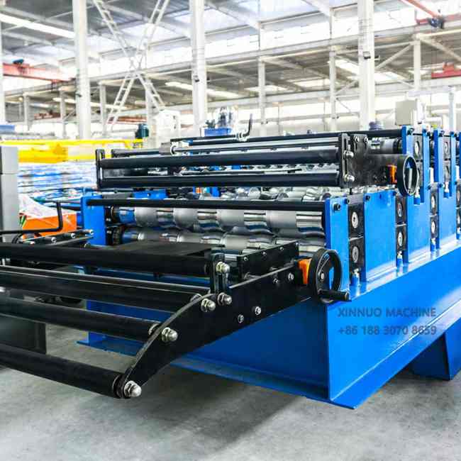 Xinnuo 1020/1000 double-layer roofing sheet forming machine is an advanced machine designed to meet the growing demands of the modern construction industry. It is specifically designed to produce two different roofing sheet profiles in a single system, significantly improving production efficiency and reducing overall investment costs. By combining two sets of forming rollers in a single structure, manufacturers can switch between different profiles without having to change machines, saving production time and space.