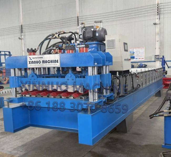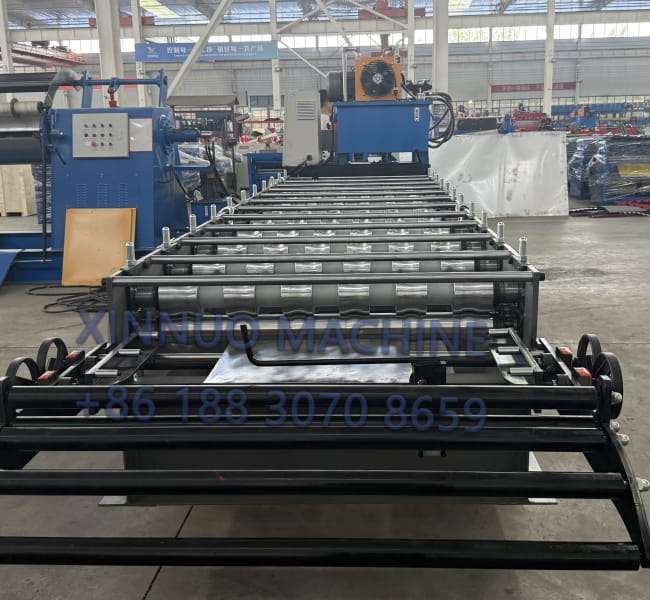 Bu çatı kaplama makinesini müşterilerimizin ihtiyaçlarına göre uyarlayarak, cilalı sac üretmelerini sağladık. Makine, manuel açma makinesi, rulo şekillendirme sistemi, hidrolik kesme sistemi, PLC kontrolü ve bir teslimat masası ile donatılmıştır. Kullanıcıların kaplamalı sacları kolayca üretmelerini sağlayan eksiksiz bir üretim hattı oluşturur.